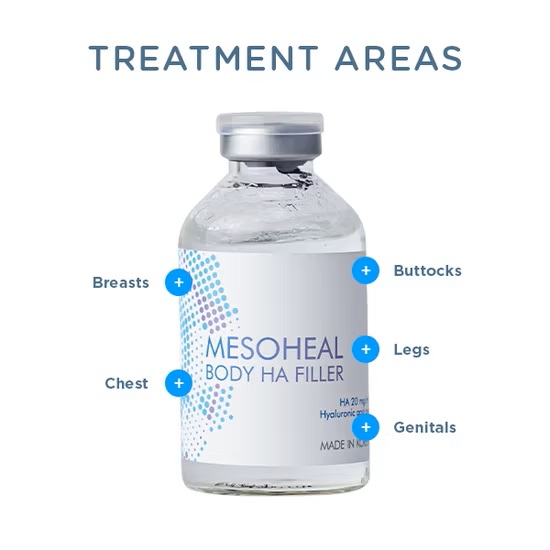 Mesoheal Body HA filler restores volume to the body in areas like breasts, lower legs, and buttocks. It is also efficient in combating cellulite and uneven skin surface due to liposuction procedures.